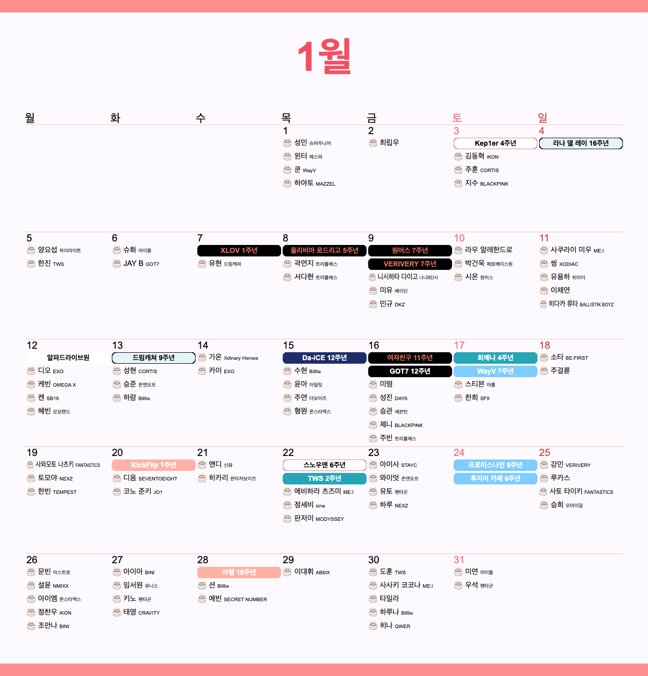 ๐Ÿ—“๏ธ์ตœ์• ๋Œ 2026๋…„ ๊ธฐ๋…์ผ ๋‹ฌ๋ ฅ(1์›”)