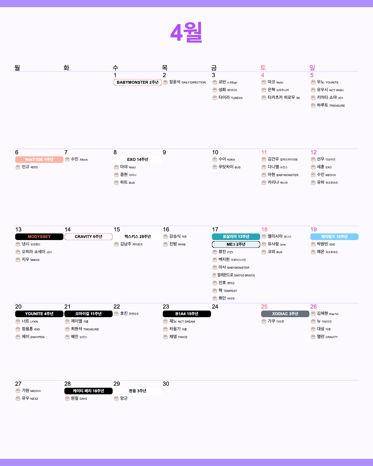 ๐Ÿ—“๏ธ์ตœ์• ๋Œ 2026๋…„ ๊ธฐ๋…์ผ ๋‹ฌ๋ ฅ(4์›”)