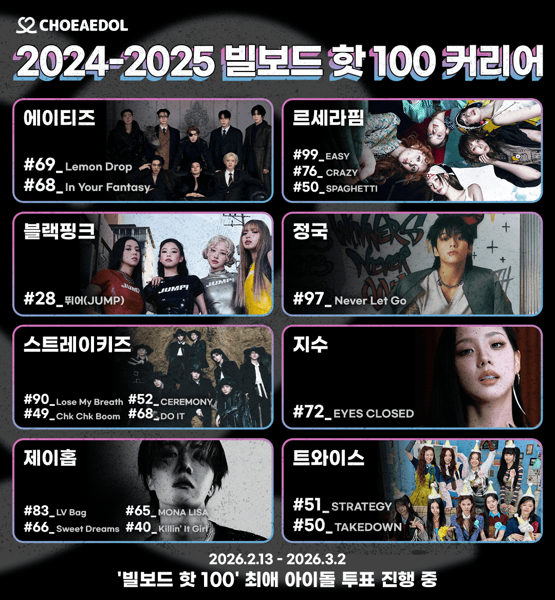๐Ÿ”ฅ'๋นŒ๋ณด๋“œ ํ•ซ 100' ์ตœ์•  ์•„์ด๋Œ์€?